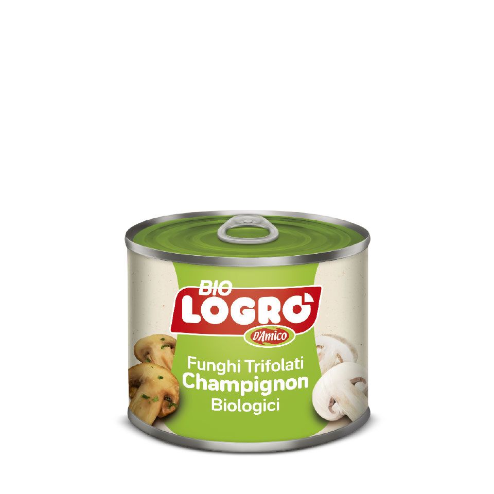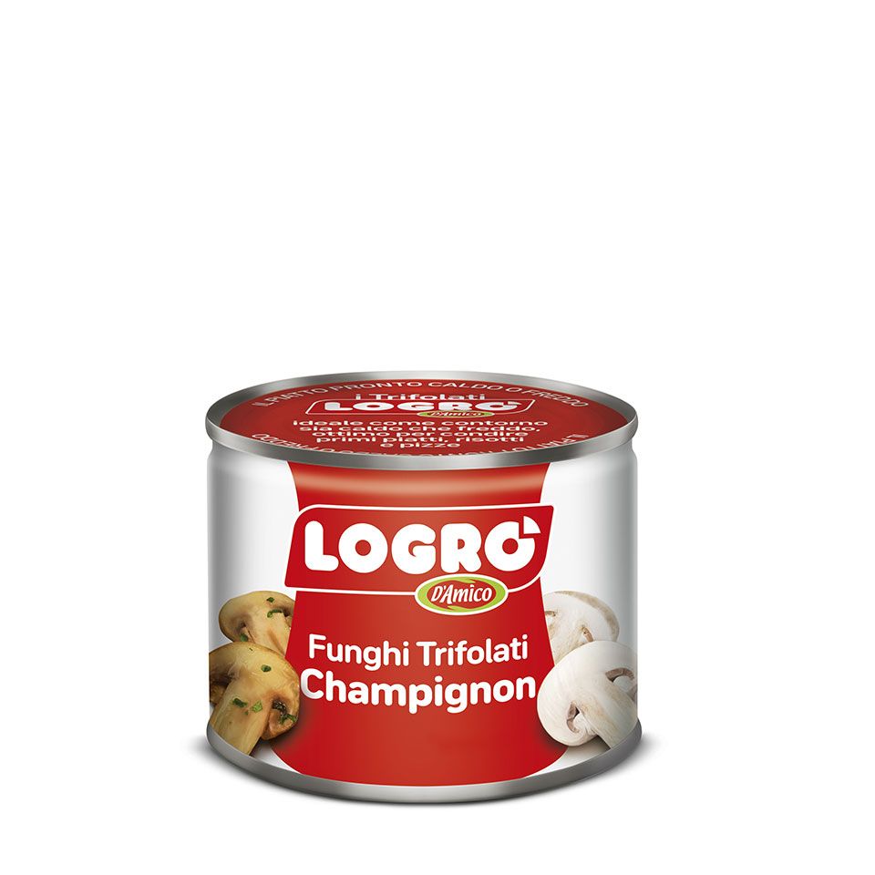 Sei referenze di funghi: Champignon, Champignon Bio, Porcini, Misto Bosco, Chiodini e Famigliola; come da ricetta tradizionale, i funghi vengono trifolati in padella preservando il sapore delicato e intenso della materia prima. I funghi Trifolati Logrò sono pronti da mangiare, ideali come contorno caldo o freddo e ottimi per condire primi piatti, risotti e pizza.