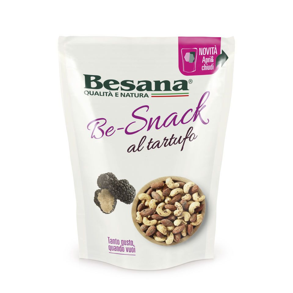 La Linea Be-Snack include: Misto Frutta Secca Affumicata, Misto Frutta Secca al Tartufo, Misto Frutta Secca al Rosmarino, Anacardio al Parmigiano
