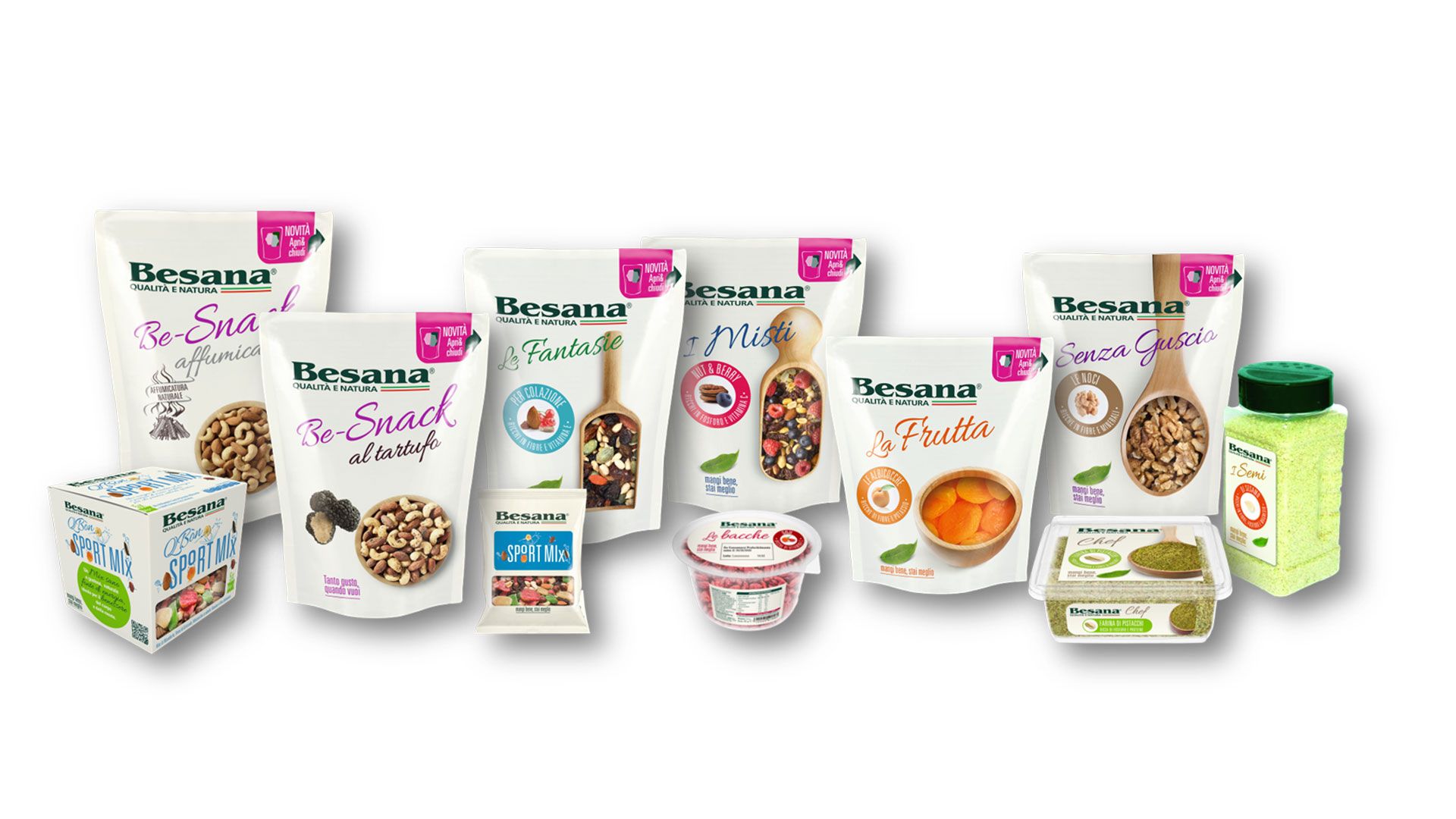 Besana is an industrial group with a history of more than 100 years in the dried and dehydrated fruit sector. Among the world leaders in the production and commercialisation of dried fruit, dehydrated fruit, seeds and chocolate, Besana has always had a global vision and a specific focus on healthy products, as well as organic and wellness products.
