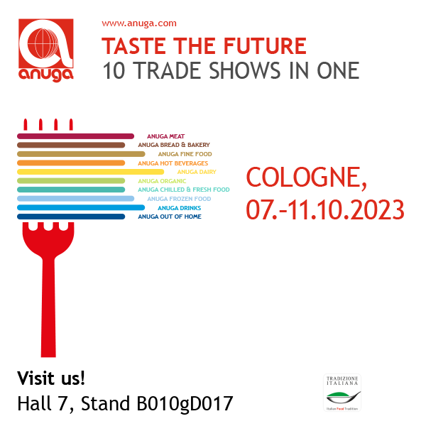 Tradizione Italiana Italian Food Tradition represents the Italian way of life in all of its shade: 10 affiliated companies of Tradizione Italiana will be in Cologne to take part in “Anuga 2023”, the biggest exhibition of the current year dedicated to the food industry and hospitality.