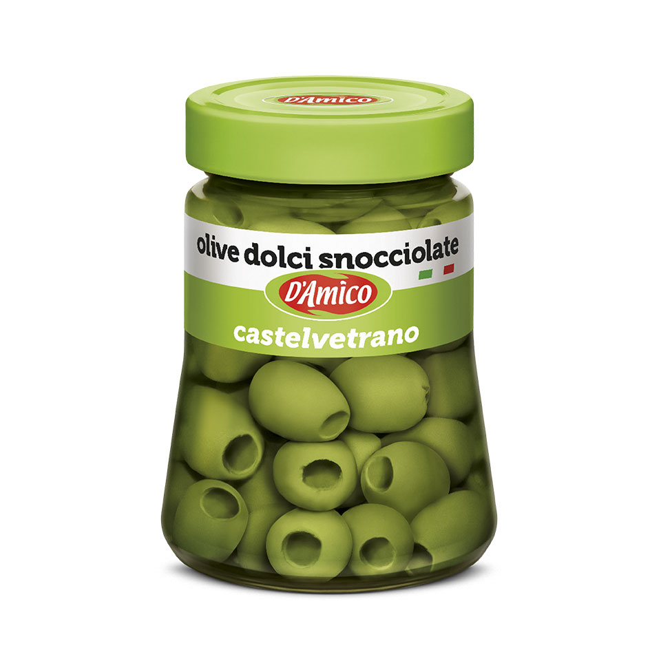 Picked when thay are still unripe, or when they are in the middle of ripening, they may be green or black, in oil or in brine, giant, stuffed or pitted: D'Amico's Olives are a tradition in everyday meals. Bella di Cerignola Green Olives are one of the most popular varieties of table olives, mainly used as an appetiser but even for salads and in aperitifs and cocktails.