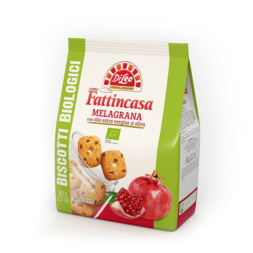Prepared with organic flour, brown sugar and extra virgin olive oil, they have the taste of typical Mediterranean fruits and are available in two variations: with organic Pomegranate, with Sicilian orange and chocolate chips.
